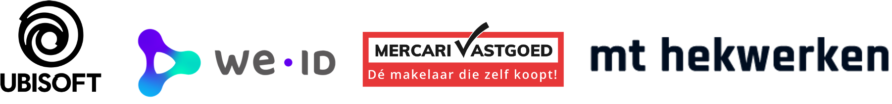 Voorbeelden van klanten met succesverhalen: Ubisoft, We-ID, Mercari Vastgoed, MT hekwerken